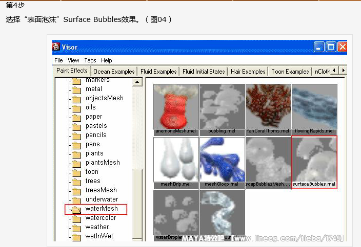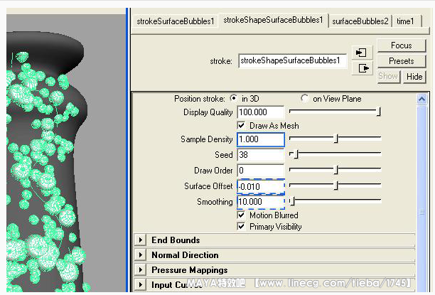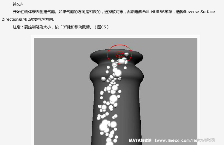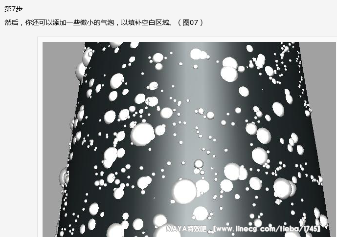 使用Mental Ray渲染,使用convert the Paint Effects to Polygons,并使用Mental Ray的Mia_Material节点中Glass Presets预置,运用到气泡上。