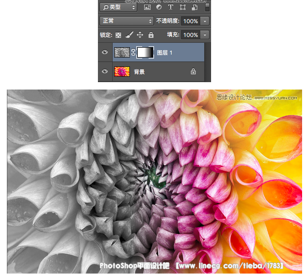 复制背景层,去色,创建一个蒙版,在蒙版上填充一个黑白渐变。