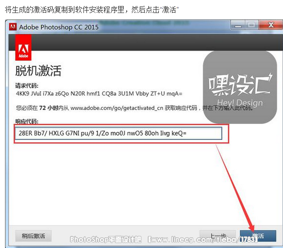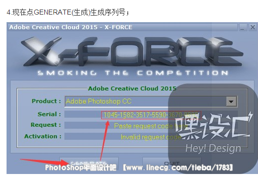 8.将生成的请求代码复制到注册机里的“Request(请求代码)”然后点“GENERATE(生成)激活码;