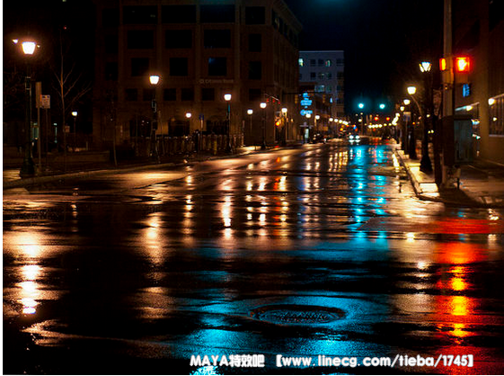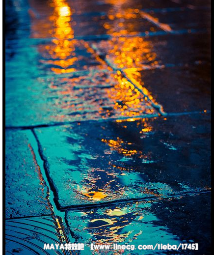 而且这个主题衍生出来的效果非常多变,雨后的街道,可能是阴天,可能是夜晚,也可能很凑巧又出了太阳。而且地面的湿润程度也会有很大不同,制作出来的效果也大相径庭。