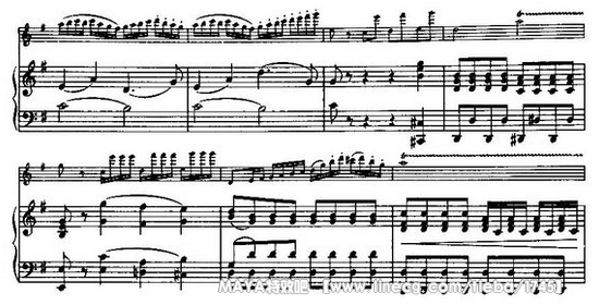 上图是莫扎特《G大调第一号长笛协奏曲》第一乐章钢琴伴奏谱中的几个小节,大家不要紧张,并没有突然变成音乐课,放乐谱给大家看,其实就是为了让大家能对节奏有个大概的了解。