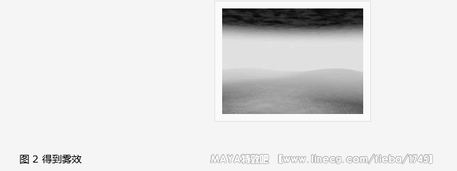 7 、将 "multilister" 窗口下方的 "solid fractal1" 贴图拖到 "bump mapping" 后面的图标上。选中沙滩造型,点击 "edit→assign" 命令将编辑好的材质赋予海滩。 制作海面和雾效 1 、建立一个 "nurbs" 平面,设置 "translate x" 设置为 -15 , "translate y" 设置为 15 , "scale x" 为 100 , "scale z" 为 150 , "rotate z" 为 -4 ; 2 、打开 "multilister" 窗口,建立一个 "blinn" 阴影组。双击新建立的 "blinn" 阴影组,在弹出的窗口中点击 "color" 右侧的按钮,在弹出的 "create render node" 窗口中点击 "solid fractal" 按钮。在出现的属性编辑窗口中展开 "color balance" 卷展栏,点击 "color gain" 后面的颜色块将颜色设置为 h=220 、 s=0.86 、 v=0.7 。点击 color offset 后面的颜色块将颜色设置为 h=235 、 s=0.96 、 v=0.17 ; 3 、 在视图中选中海面造型,在 "multilister" 窗口中点击 "edit→assign" 命令将编辑好的材质赋予海面; 4 、点击渲染设置按钮打开 "render globals" 窗口,展开 "render options" ,点击 "environment fog" 后面的图标加入环境雾; 5 、再次点击 "environment fog" 后面的图标,在打开 "attribute editor" 窗口中展开 "simple fog" 卷展栏,点击 "color" 后面的颜色块将颜色设置为 h=212 、 s=0.4 、 v=1 , "saturation distance" 为 20 。展开 "clipping planes" ,将 "fog near distance" 设为 20 ,将 "fog far distance" 为 150 ,渲染视图得到雾效 ( 如图 2) 。