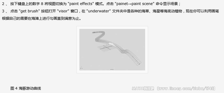 模块,在视图中选择海滩,点击 "paint effects→make paintable" 命令,使 "paint effects" 特效都建立在海滩上;