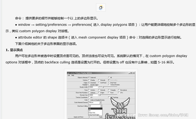 显示多边形maya 提供了很多方法来对多边形做不同的显示: ● display → polygon components 命令:这是一个最为简单直接的方法。 ● display → custom polygon display