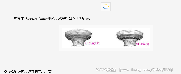 propagate 命令与 reverse 命令的功能类似,只不过它不仅可以翻转选定的面,也可以翻转与选定面法线方向一致的面。 柔化 / 锐化功能是 normals 子菜单下的另一个功能,它可以人工判断多边形的边是要柔化还是要锐化。具体步骤如下: (1) 创建一个多边形球体并且把它的细分数 (subdivision) 设置为 10 。 (2) 执行 display → custom polygon display