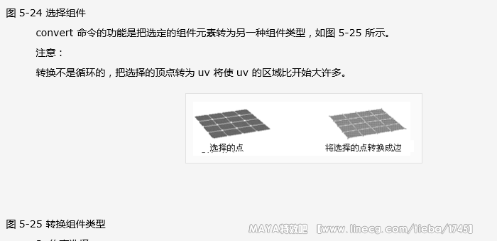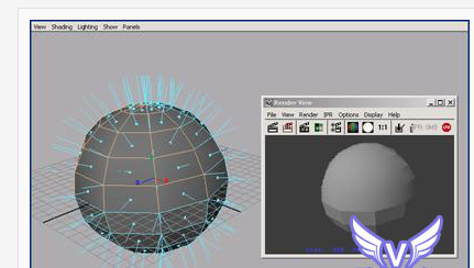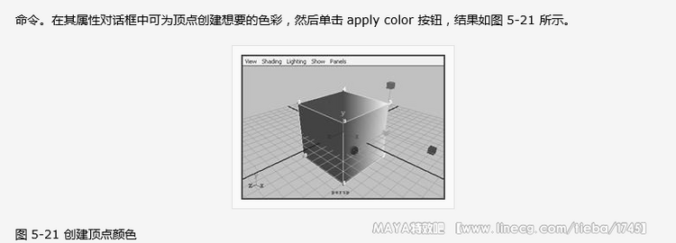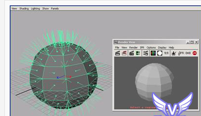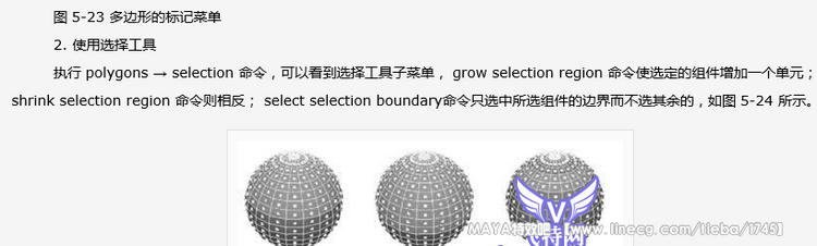 命令,在弹出的对话框中,分别选中 vertices 和 face 选项组的 normals 复选框。 (3) 在 shaded 模式下放大观察球的顶点,如图 5-44 所示的法线。 (4) 每一个顶点有 4 个法线,每一个法线平行于相对应的面法线。选取球的上半部分,并且显示边。 (5) 执行 edit polygons → normals → soften/harden