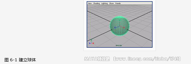 命令创建一个多边形球体,不要单击工具架上的球体图标,否则得到的将是 nurbs 球体,这样表面雕刻画笔工具将不会非常有效。 (2) 在 channel 盒中,在 inputs: polysphere1 下,设置 subdivisions x 和 y 为 40 ,如图 6-1