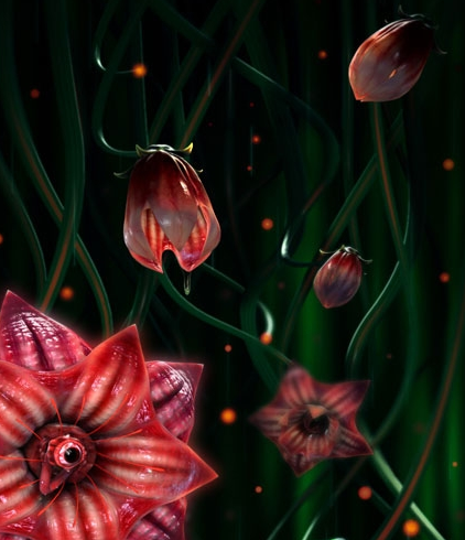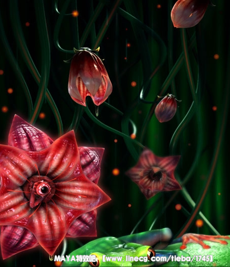 最后我把分层渲染出来的图片掉入photoshopcs里,进行最后的润色调整,把深处的一些藤做了一些模糊来做出景深的效果。最后发现主体物有点过硬,原来是没有景深的原因,接着我又回到3dsmax里渲染了一张zdepth,再导photoshopcs里把zdepth加到图片里做最终的调整。