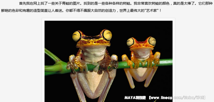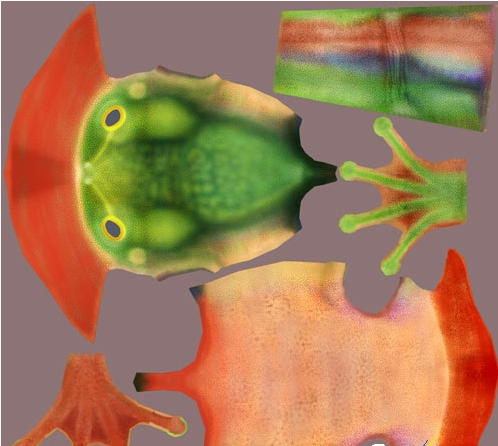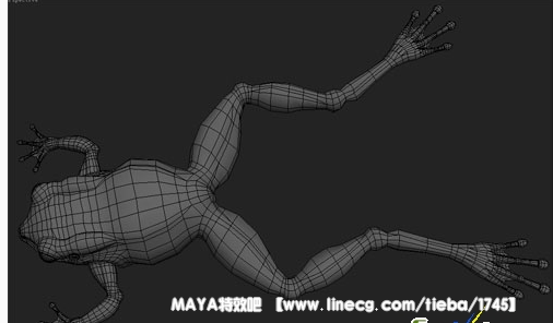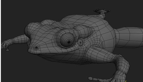 3、模型 我首先参考树蛙的图片,把树蛙的大体模型建出来,在这里模型的制作部分。相对来说是比较简单的,主要注意的就是要把树蛙的那种可爱的感觉把握好,然后就是它的一些形体结构要刻画到位。然后在模型布线的方面,就是尽量做到活动的关节处用四边面来表现,这样的话有助于动画的调整。