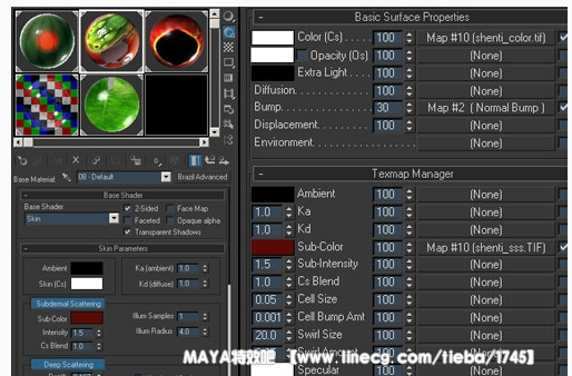 我没用brazil/s的全局光,这是因为自己来打光,可以更好的控制自己想要的效果。在这里主要是想用brazil/s的表皮材质。
