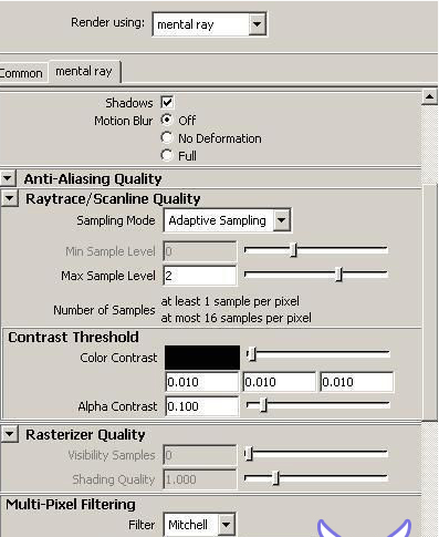 contrastthreshold这个值是表示对比度,下面的三个通道代表rgb,我们都降低到0.01这样可以有效避免渲染中出现的颗粒现象。