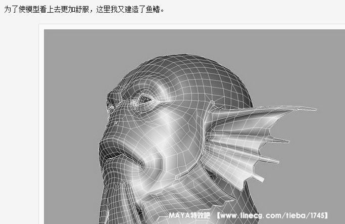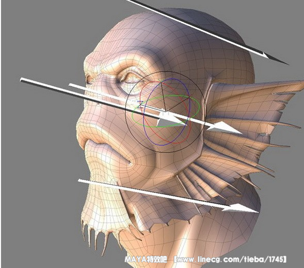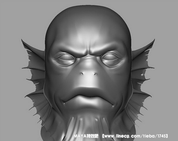 为了让角色看起来更加真实,我继续增加鱼鳍,并添加了更多的角色模型,使用变形器和软选择还做了脸部的不对称结构,并使用blend shape做了一个保持不变的版本,以防万一,我需要回到最初对称的阶段。