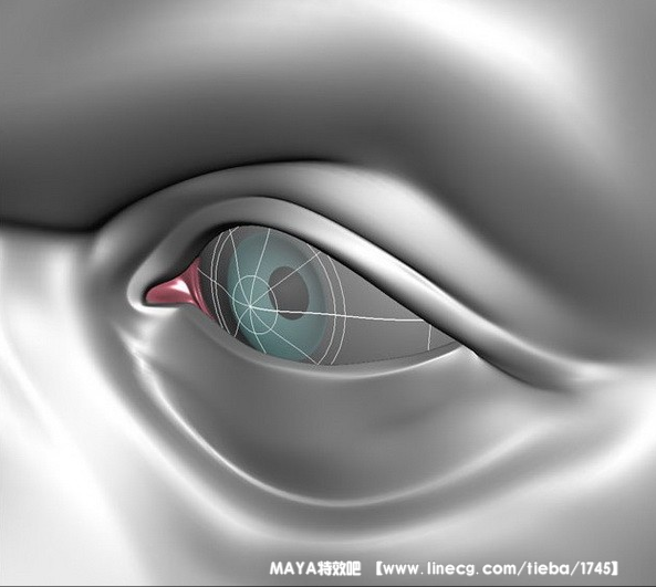对于眼球,我做了两个单独的几何部分:虹膜和脉络膜(上面赋予纹理),角膜在最外面(光面的外套)。为了保持眼球完整,我添加了一个小膜作为瞳孔。