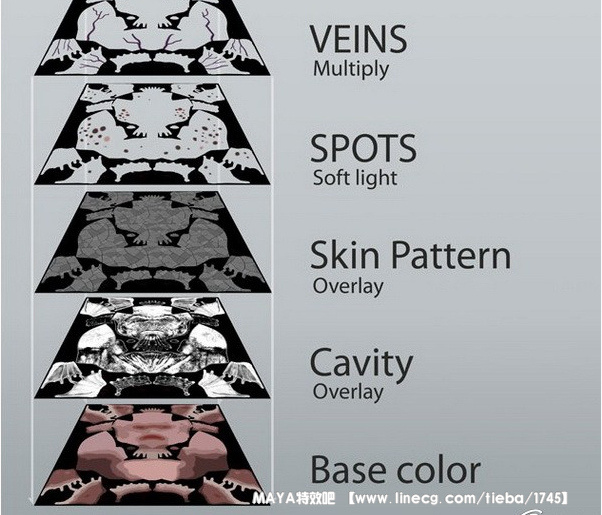纹理绘画通过下面这张图,我告诉你如何在Photoshop中叠加层,希望它可以帮助你。请记住,一个简单的图像之所以变得很复杂,取决于你正尝试什么类型的纹理,大多数情况下按照这种方式来操作会得到不错的效果,但不是一成不变的,需要你灵活变通。