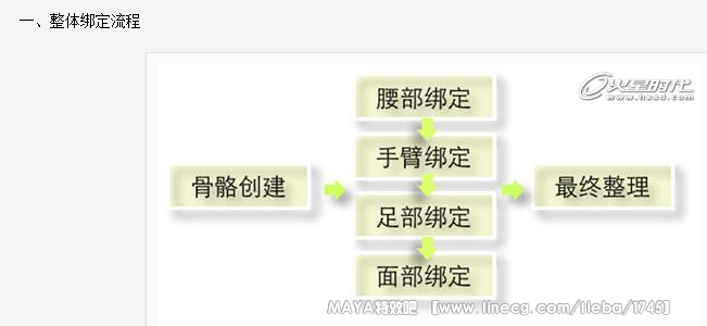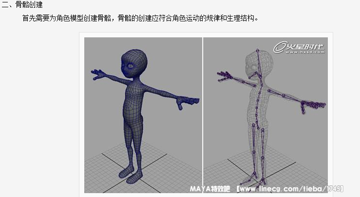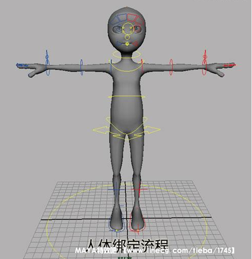 角色绑定流程中涉及的主要工作内容有:创建骨骼、调整骨骼轴向、添加IK手柄、控制器制作、IKFK切换、约束、蒙皮,mel绑定和属性连接等等。下面以一个卡通模型为例,将流程中各环节逐一进行讲解。