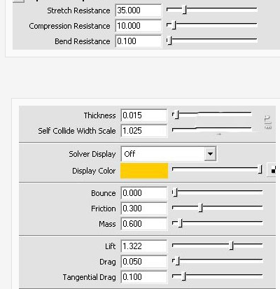 需要关心的是下面这三个数值,是布料行为的最重要的三个属性,在syflex中,也有对应的属性名称。分别是抗延展,抗收缩,和抗弯折,这三个属性对应的是布料的link和edge的行为。(图08)