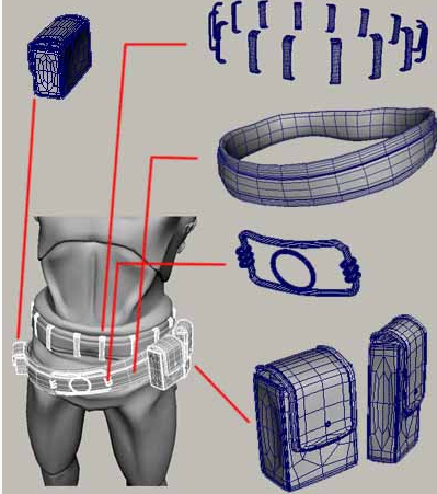 腰带和挎包制作腰带和挎包并不复杂,只要把握好合适的尺寸并适合腰部的形状就行。为了让腰包看上去更真实,可以在它的边缘添加一圈硬边。(图07)