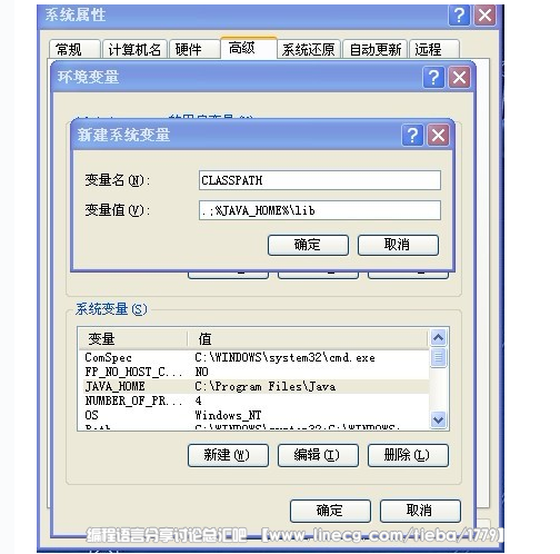 系统变量-新建-变量名:CLASSPATH 变量值:.;%JAVA_HOME%lib