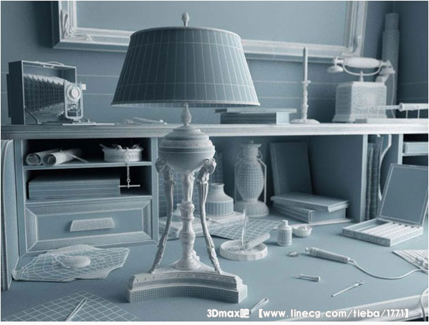 我认为没有必要在这篇教程中描述每一个物体的建模过程,所以我只会讲解台灯的建模。说明:我用了同样的技术做了其他物体的模型。