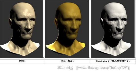 下面的例子展示了比例(Scale)参数的效果。请注意,比例的值越大,物体的半透明越强。从效果上讲,比例和散射半径的作用没有本质差别,但其可以单独地来调节预设材质的效果(如果改变散射半径,就改变了材质的物理性质,而比例参数只是影响Vray在计算3S效果时所识别的建模的尺寸,等于是欺骗的渲染器...)。