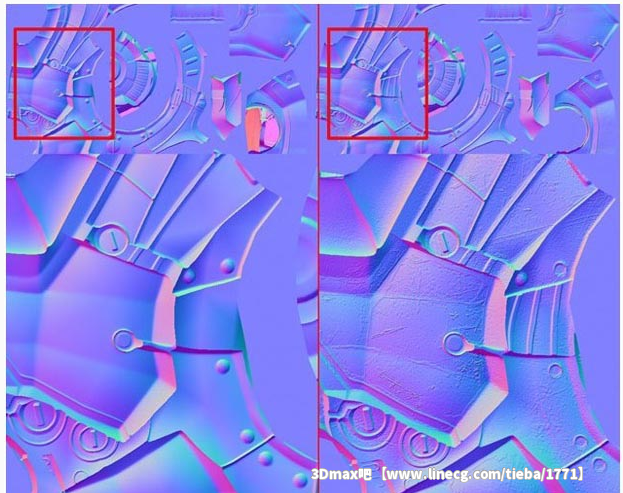 我想要创建一个更加详细的标准贴图,所以我使用了额外的凹凸选项,我将碰撞贴图放置到这个位置,然后用低模提取出碰撞标准贴图。 (图05)