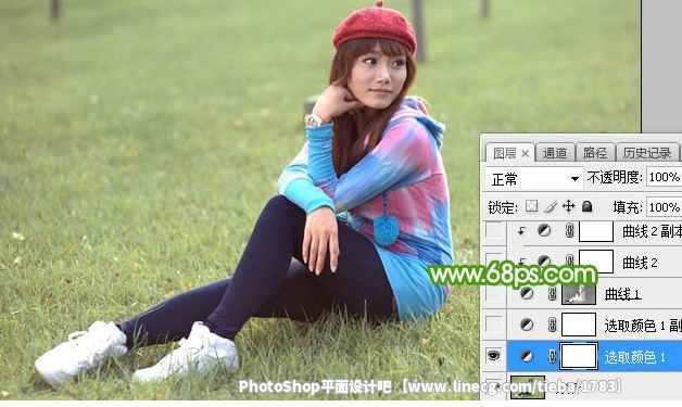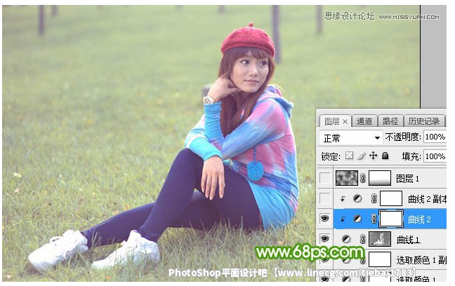 素材图片以黄绿色为主,调色的时候先把主色调淡一点,暗部适当增加一些蓝紫色;然后用云彩滤镜给整体增加唯美的烟雾;后期微调一下人物颜色,局部增加一些高光即可,喜欢的朋友让我们一起来学习吧。最终效果