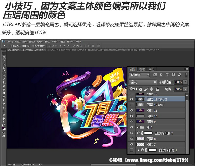 本教程主要使用Photoshop结合AI和C4D制作绚丽字体海报,这篇海报主要是解析C4D在商业海报中的应用,然后结合AI和PS制作出最终效果。