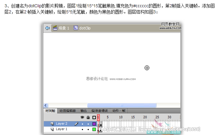 4、返回场景1,图层1拖入背景图片。5、添加as层输入代码: