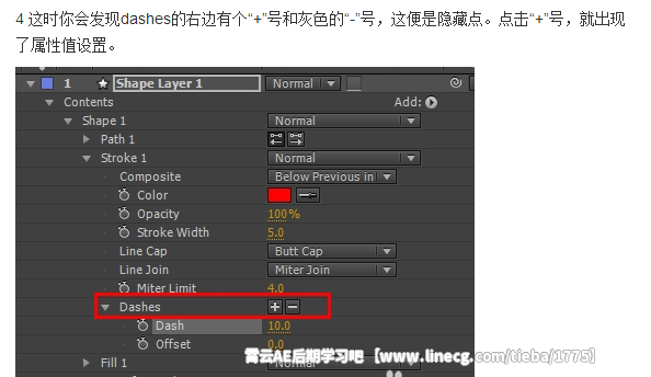 6 当然到这里还没完,继续点击“+”号试试,通过如图的几个不同属性值设置可以得出好多种虚线组合。你会发现原来你也可以画出类似地图边界线的复杂虚线了。