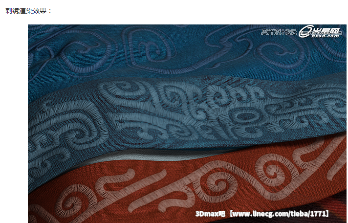 刺绣和地毯衣服上的刺绣花纹都是使用贴图来表现三维,这个步骤在Photoshop中进行。使用选区把花纹的部分选中(选区A),按Ctrl+H隐藏选区,新建图层,使用1像素、柔边、带压力、不透明的画笔来绘制刺绣上的细线,这个过程需要有耐心,画的越细致最后的效果就越好。控制压感笔的力度绘制出透明度不一样的线条来表现刺绣线的层次,线条之间要留出距离以免混成一团,画完一层后可以选取稍暗或稍亮的颜色再绘制较稀疏的一两层,使线的层次更加丰富。画的时候要注意随着花纹的走势改变刺绣线的方向。绘制完成的图案作为Diffuse贴图使用。