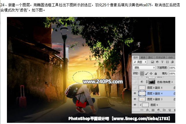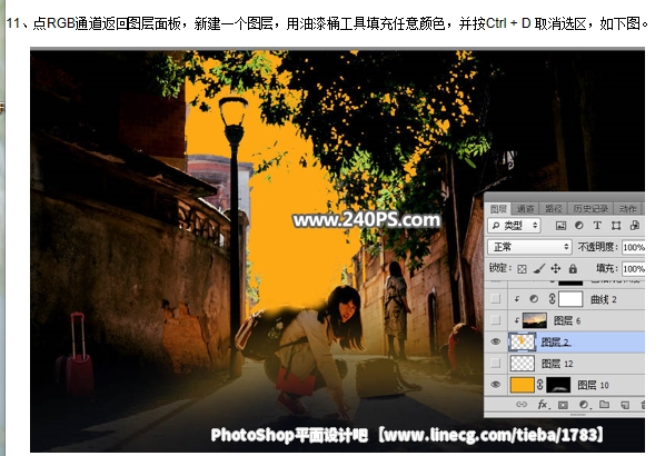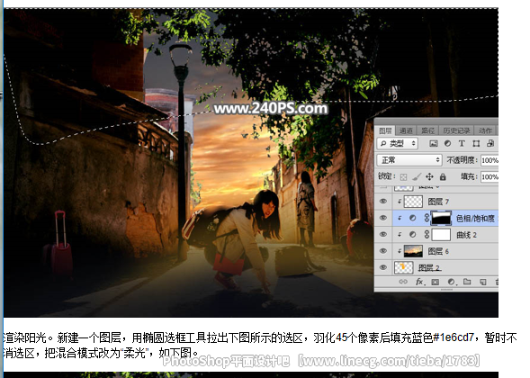 素材图片也是逆光拍摄,只是天空泛白,韵味不是很强;前期把图片整体压暗,营造出较暗的氛围;然后给天空部分换上霞光素材;再在合适的位置渲染出暖色高光,模拟出逆光效果。
