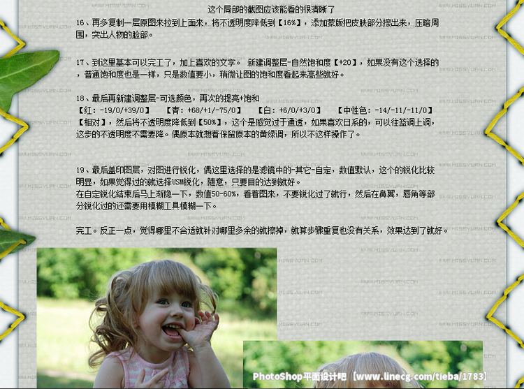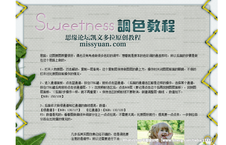 【教程】Photoshop调出偏暗色儿童照片甜美效果