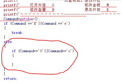 然后我们继续判断输入的字母是什么,我们现在先做打开外挂这部分,看上图,其中O是打开外挂的命令,写到这里我们要回到顶部定义两个变量,看我红圈,一个是HWND(句柄),一个是DWORD(双字),你可以把两个都理解为我们熟悉的int,他们都是数字,只不过叫法不同