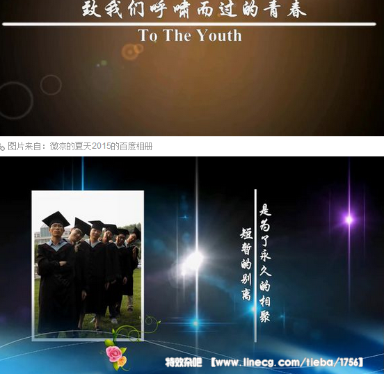 楼主学生党一枚,太忙,一个多月没出作品、发帖了,最近逛贴吧发现好多吧友求毕业作品,适合的音乐,毕竟毕业季来了嘛。作为过来人(现在研一),在此给大家陈列一些本人感觉不错的毕业作品和适合毕业季的曲歌,希望能给大家带来灵感,有所借鉴,做出自己心仪的作品,让青春永驻