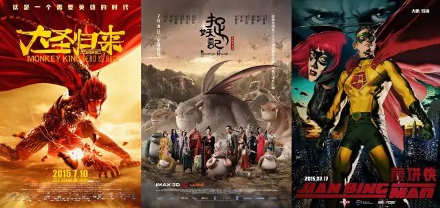 截止7月22日,许诚毅打造的奇幻喜剧《捉妖记》,上映首周已拿到9.6亿票房,未来打破《泰囧》12.5亿的国产电影票房最高纪录,只是时间问题。大鹏自编自导自演的喜剧片《煎饼侠》6天攻下6.4亿票房,田晓鹏导演的口碑爆棚的动画片《西游记之大圣归来》票房已突破5.5亿。在三部国产片的助推下,大盘热度惊人,单周总票房甚至超过了春节时的15亿单周纪录。要知道,去年暑期档同样是没有好莱坞大片(《变形金刚4》7月27日下映,情况略有不同),国产片票房前三名《分手大师》《后会无期》和《小时代3》没有一部达到7亿。当然,20%左右的市场容量扩张也是票房增长的因素。