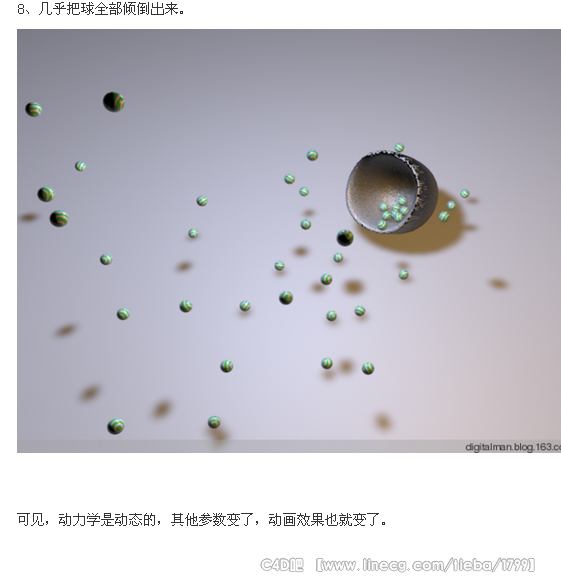 上述动画太平淡,盆子缓慢地倾倒,盆子内剩余不少球体。