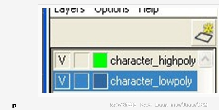 在任务开始的阶段,给场景里的每个模型或者模型组指定一个层。我为模型的low-poly版本以及high-poly版本都做出了层,这样,我就可以关掉low poly model 和high-polymodel,并能保证一定的清晰度。我也已经为地面和墙或者场景内存在的其他事物做出了这样一个层。(图1)