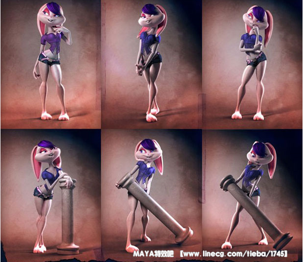 本教程向朋友们介绍利用Maya打造可爱性感兔女郎。制作难度不大,主要在于制作思路上,最初的尝试有点奇怪。对我来说,要做一个兔女郎,同时有着性感、可爱、充满魅力的形象是有点困难的,做出来的东西有点糟糕。所以我做了一些夸张的比例,将注意力放在角色的脸部上,尝试做出一个吸引人的样子。