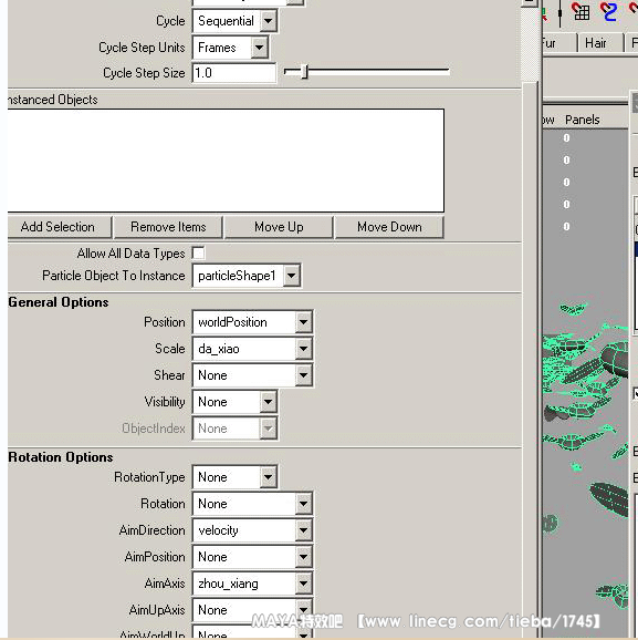 12.在粒子替换属性中设置 将Cycle(循环类型)指定为Sequential(连续)