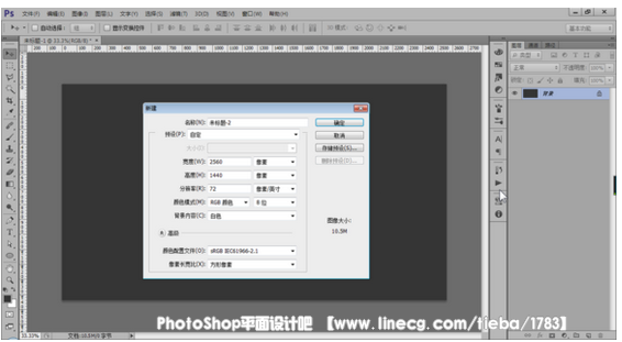 打开PS,创建一个新文档,使用 2560*1440 像素大小,做完这一步之后,我把整个背景图层填充了深灰色