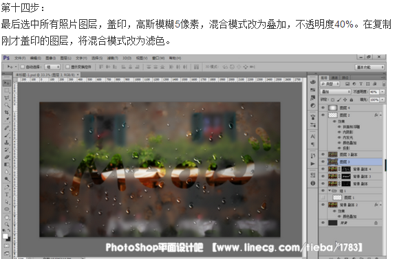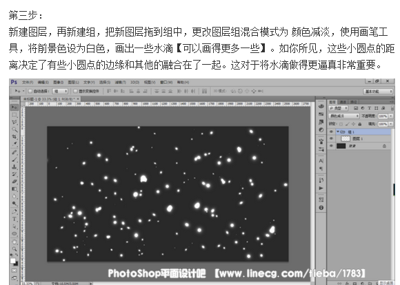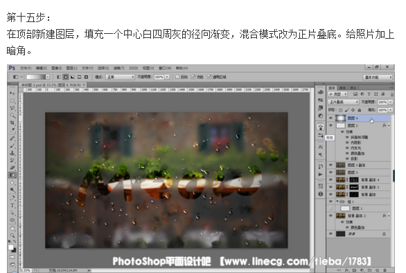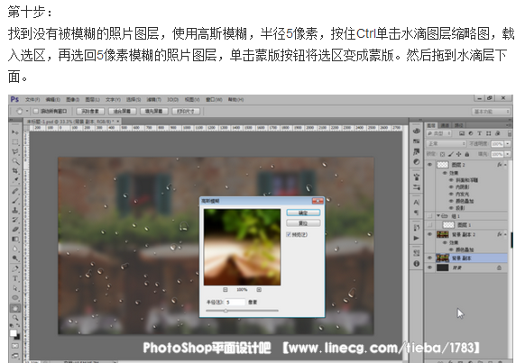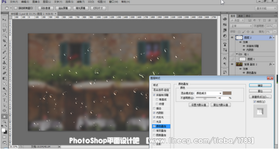 “在连续下了3天未间断的雨之后,我决定将这场雨作为灵感运用到一个新的PS实验中来。2007年我做了一个视频教程来展示如何用PS创造水滴,但那只是一段视频,没有任何文字介绍,所以许多人发邮件问我能否制作文字版教程。我总是觉得单纯地重复一个同样的教程没什么意思,所以我决定尝试着制作一个包含了那个水滴效果的新效果。”