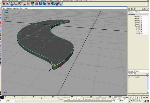 B. 你需要群组这些曲面两次分别得到两个不同的枢轴点,一个为了以后的关门动作,另一个是为自身的旋转. 1. 选择这两个曲面。 2. 选择Edit→Group,并重命名这个节点为“localPivot”。 3. 选取节点localPivot再选择Edit→Group一次。 并重命名这个节点为“centerPivot”。 4. 你现在要调整localPivot的枢轴点位置。 选取节点localPivot,按下键盘上的Insert按钮改变枢轴点。 根据图例在top视口移动枢轴点到门的边缘。 5. 再按一下Insert键完成。http://www.iiimaya.com
