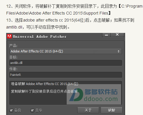 ae cc 2015,全称为adobe after effects cc 2015,它是adobe官方推出的最新版本的视频剪辑及设计软件,也是目前工作和生活中用于高端视频特效合成的最佳软件。新版本功能更加强大,比如新增加了Creative Cloud Libraries,让您的所有创意资源可随手拈来,您的所有收藏资源现在可以从After Effects的“库”面板中进行访问。比如加入了人脸跟踪功能,通过管理跟踪的细节级别,您能够以极高的精确度检测和跟踪人脸。全新的功能,让用户可以开发出更有创意的视频产品,是目前视频剪辑最佳的软件。 特别说明本主这里提供的是adobe after effects cc 2015中文破解版下载,软件包中包含了产品注册机和破解补丁,可以成功激活软件,其详细的安装教程可以参考下文操作,请严格按图文操作,安装软件将更加简单方便,一次即可成功。ae cc 2015破解安装图文教程1、下载解压缩,点击“Set-up.exe”开始安装;